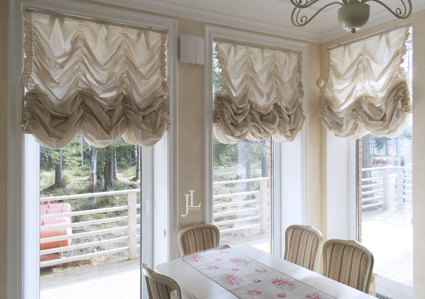- Для визуального увеличения пространства — легкие, светлые ткани.